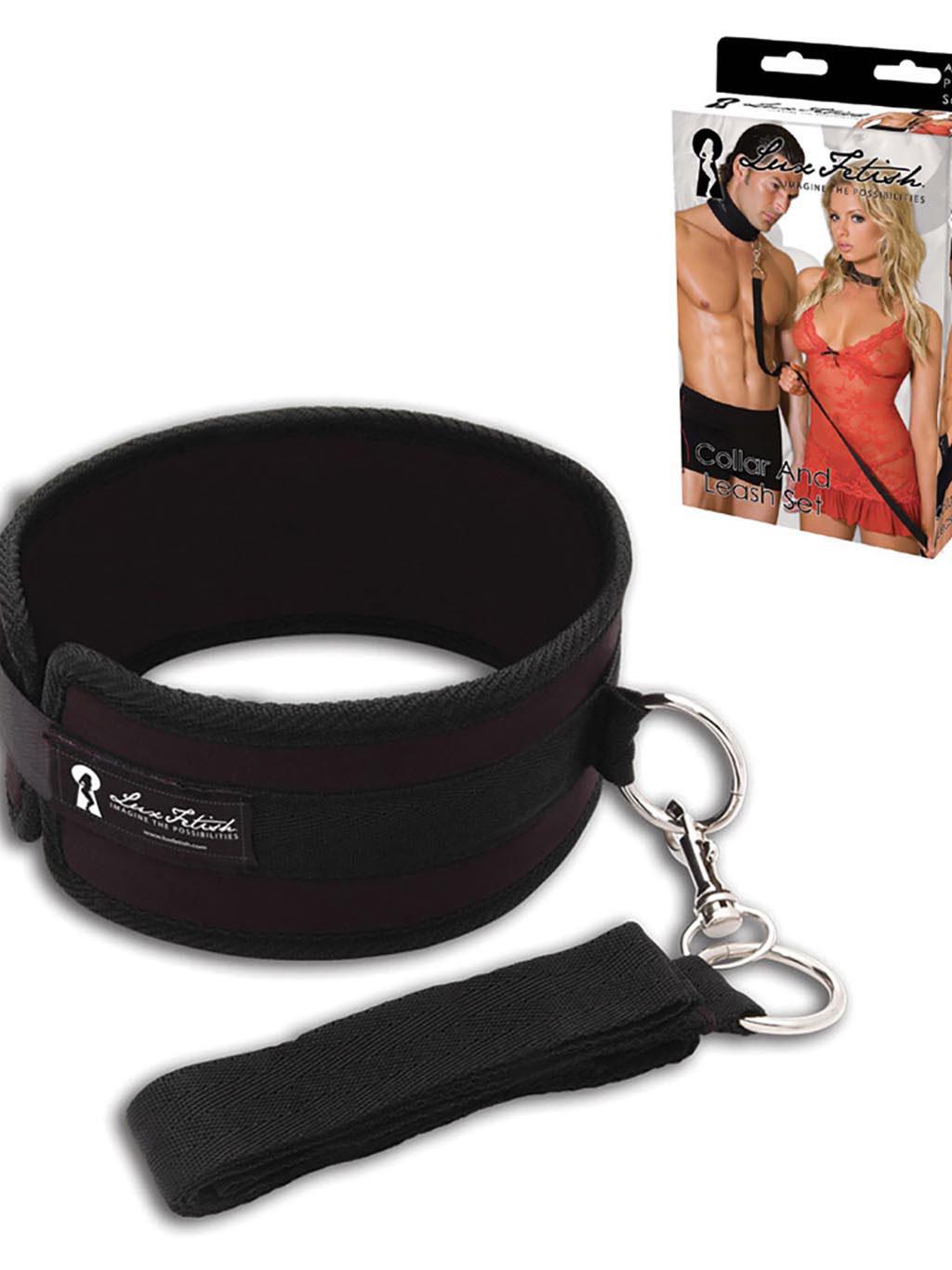 Adjustable cushioned collar with leash. black. 100% polyester.