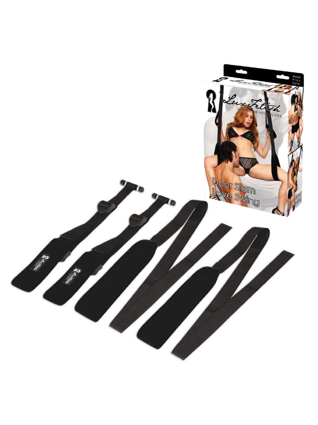 Adjustable door love swing. Hand and leg loops with extra thick cushioning. 100% polyester.