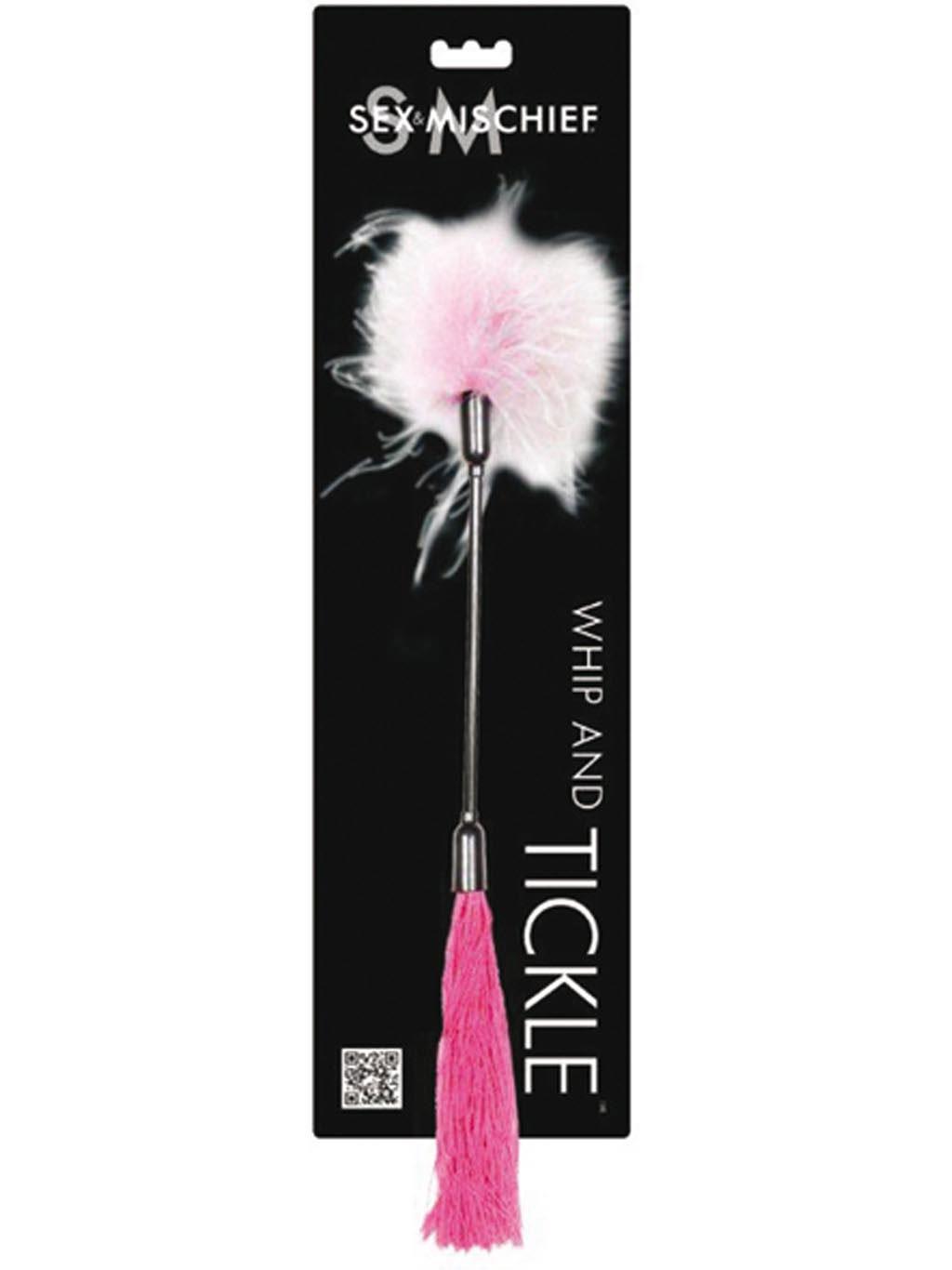 35 cm handle with marabou feathers (pink/white) and rubber straps (pink).